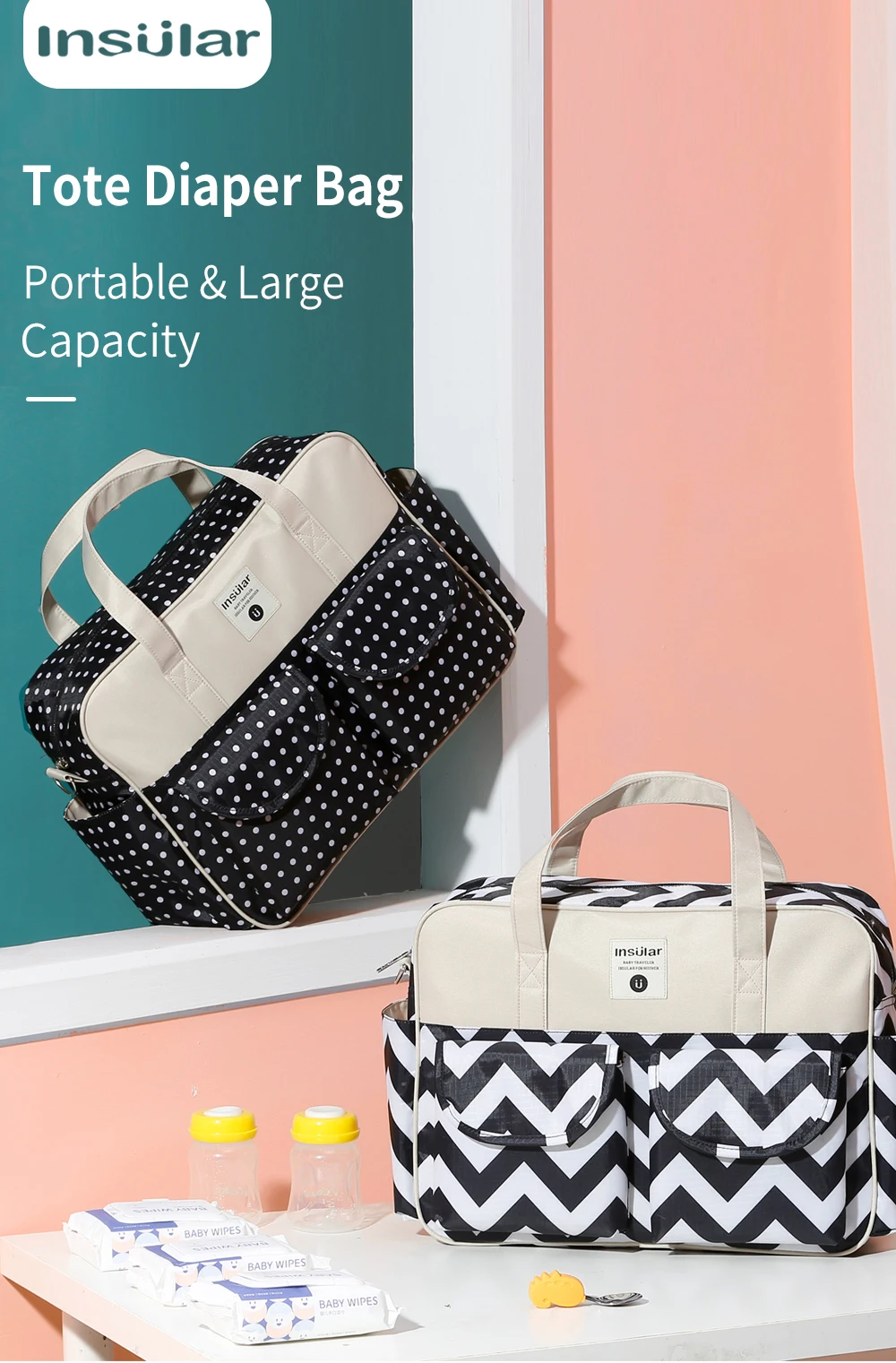 Insular Fashion Print Diaper Bag
