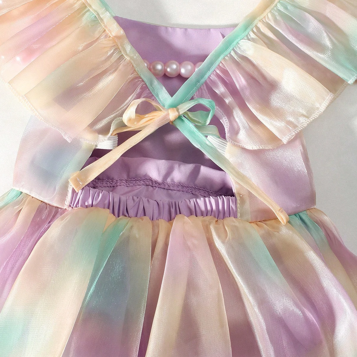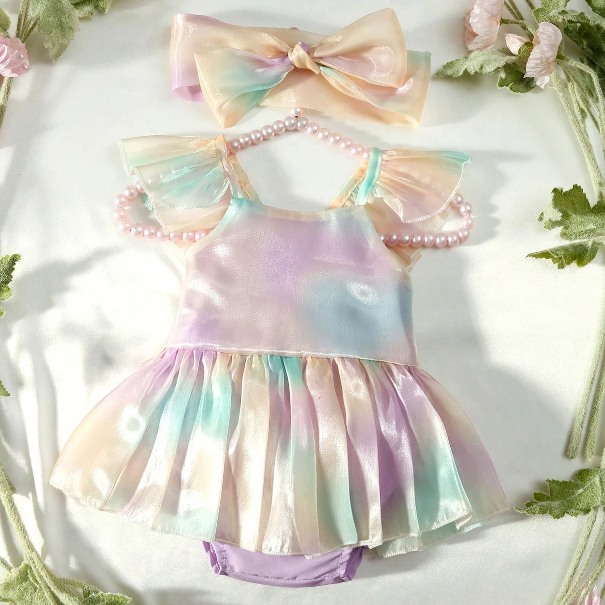 Newborn Photography Rainbow Gradient Color Romper Pleated Skirt with Headband