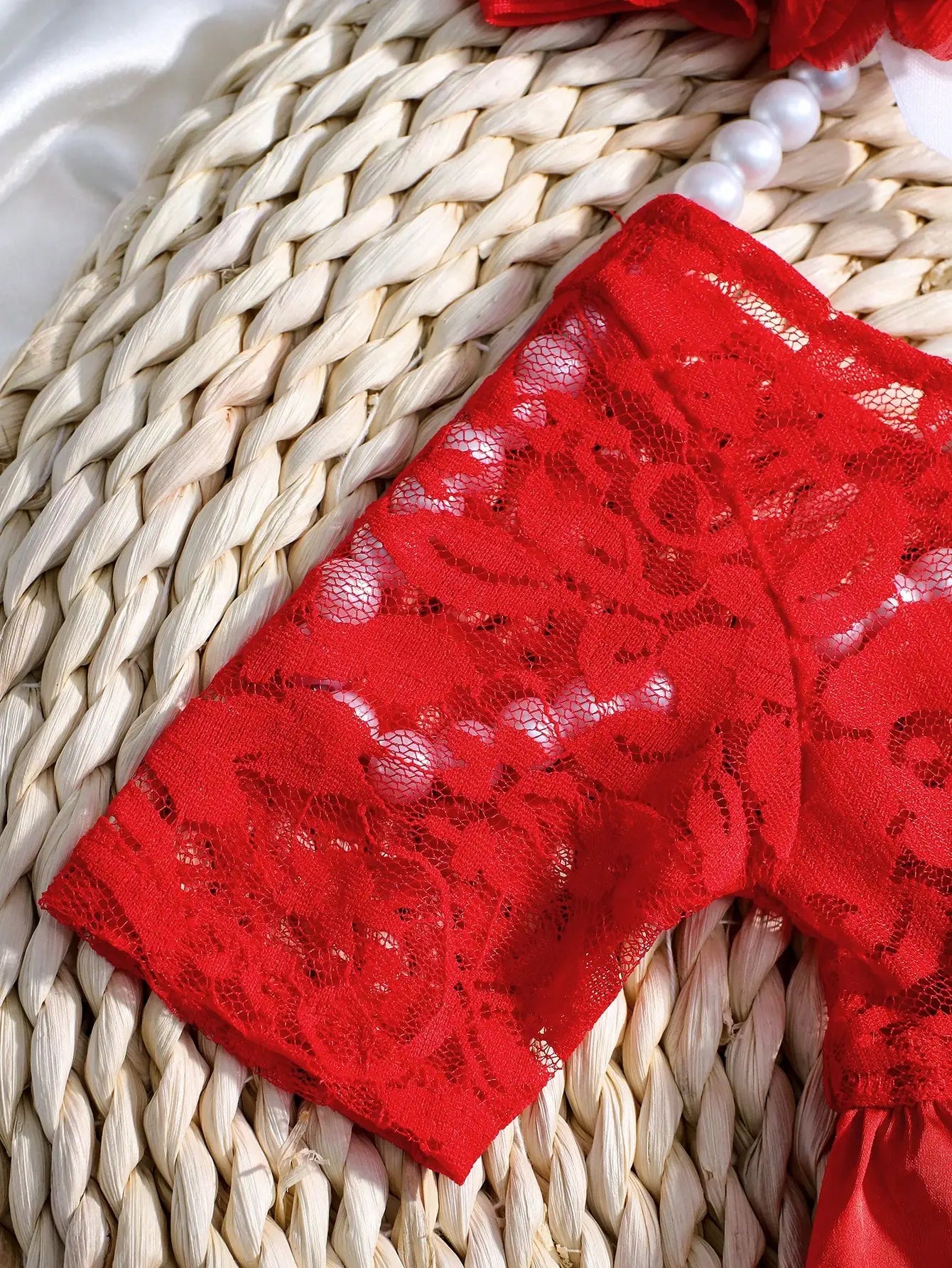 Newborn Photography Bowknot Lace Dress with Floral Headband